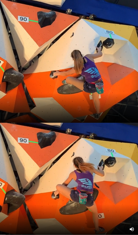 At the Dominion River Rock Competition in 2019, Arabella Jariel took first place by bypassing the “80” point hold to go direct to the hold worth “90” points. To the outside world, this is a case of Arabella “seeing” some unorthodox beta. In Arabella’s eyes, however: “It’s all Taylor’s fault. I’m perching on everything now.”