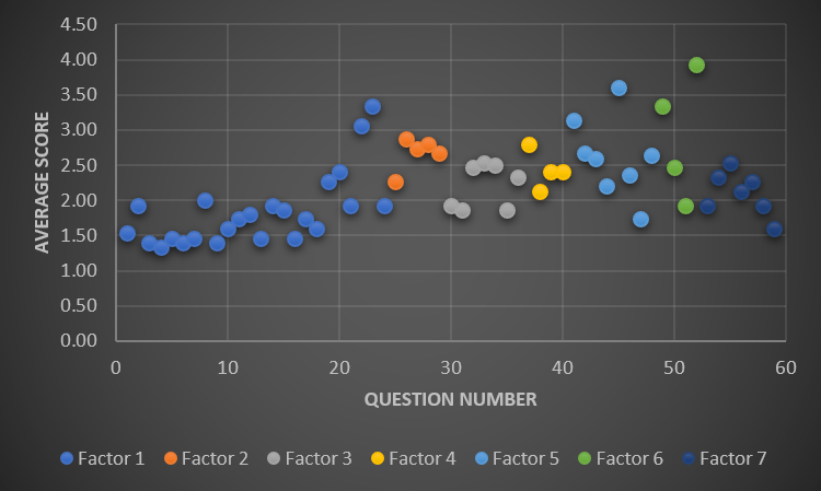 On Factor 1, Question 23: “Not sure if this was due to miss-understanding the question. Need to figure out why that perception is there.