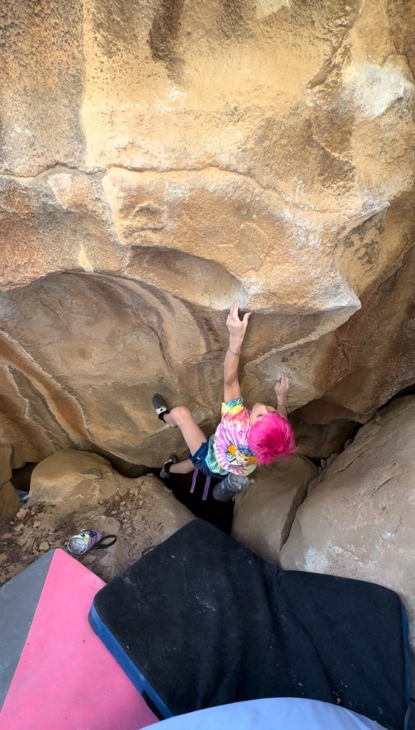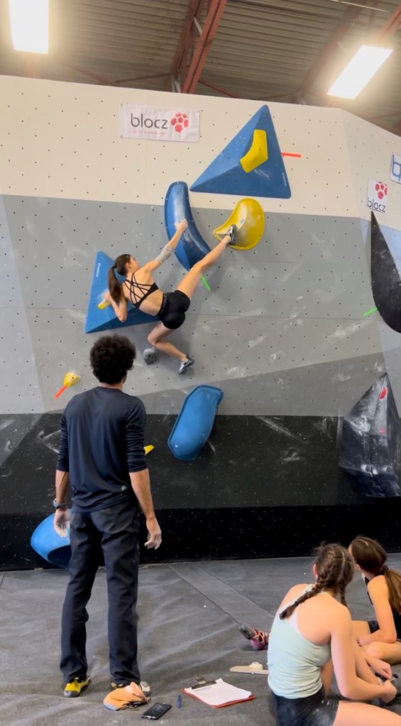 | Debrief | “How close did you get to the wall?” “Pretty close.” “Did you get to the hold?” “Yeah, but I think I can get further. I felt like I extended really well but don’t remember whether I threw down well. Do you?” “Let’s focus on breaking the bottle this time. Throw the bottle down and smash it against the ground. I want coke to fly everywhere.” “So smash the bottle against the ground.” “Smash it.” “Got it, coach.” |