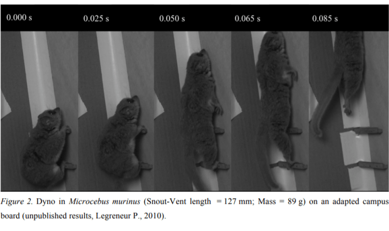 Dr. Winkelman advocates a Long Loop (DDCDD) and a Short Loop (the CDD of the Long Loop) for purposes of providing feedback to an athlete. Below, you’ll find an example of the DDCDD loop using a “lemur” as a model for a dyno. I have video of a lemur doing a dynamic jump move on an adapted campus board which Dr. Pierre Legreneur sent me (link to research below). The video is short and to the point, as is a comparison we use with French World Cup Climber Manu Cornu. For our purposes, I’ll post a picture (see above) as well as a human-example (see below).