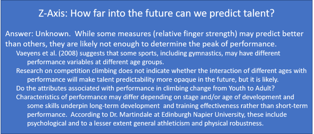 - As a [supposed] “expert” in performance on climbing, “I’m mostly clueless” when trying to identify, as opposed to develop, top-level talent.